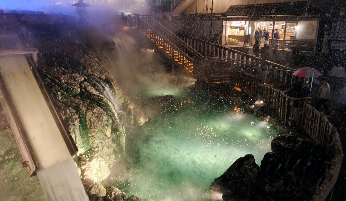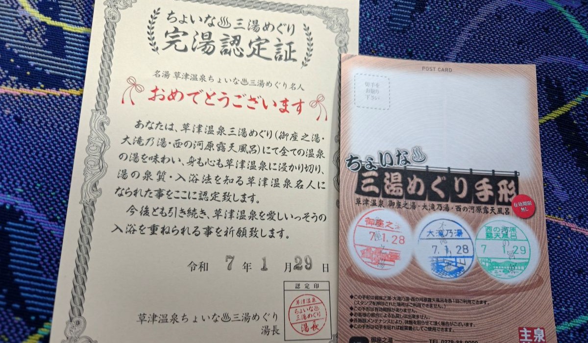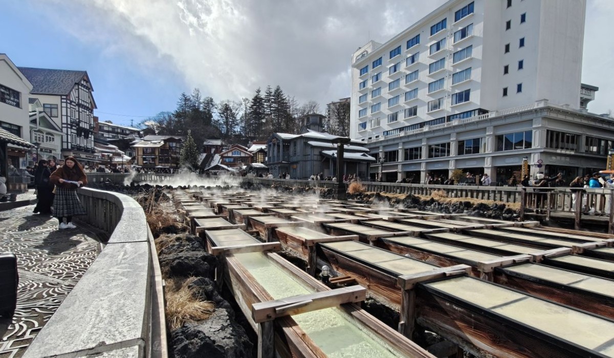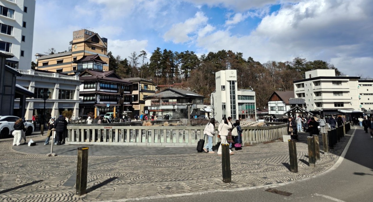 飯店→關越巴士→中之條站→JR特急草津四萬→長野原草津口站→JR東關巴士→草津溫泉巴士站→步行→飯店→◎湯畑、溫泉區商店街→◎大瀧乃湯→◎熱乃湯揉湯表演(15:30)→◎御座之湯→飯店(大東館)