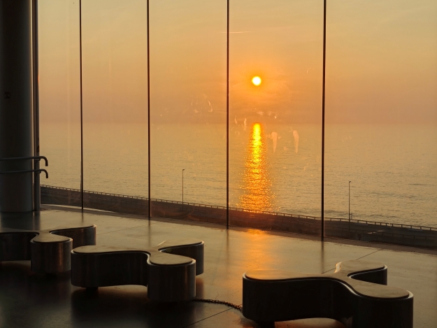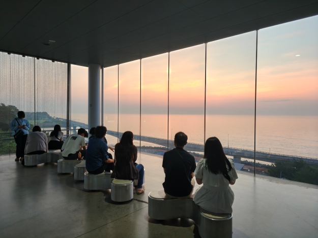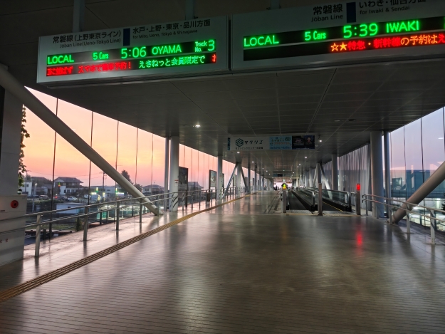 【茨城縣】日立車站日出美景 2025-09-30 by Wansu Huang in 茨城縣 全球最美的車站之一 到訪日期:2025/08/24。 位置地點:日本茨城縣日立市。 屬於 JR 常磐線(Jōban Line)路線,是沿太平洋海岸往北南向連結的關鍵車站。從水戶站到日立站十分便利,搭乘 JR 常磐線,約 29 分鐘就能直達。 車站內設有 SEA BiRDS CAFE,可以邊喝咖啡邊欣賞海景與光影。 日立車站位於太平洋側,是一個很現代化的JR車站,以海景日出聞名。若要拍攝日出,建議至少要提早 20–30 分鐘抵達車站。很幸運當天天氣很好,在清晨微光中踏入日立車站,沿著長長的連接通道,步行至尾端的展望活動空間,可以直接看到太平洋,視野非常棒,抵達時已經有很多人佔好位置在等候日出了。 ↑日出前半小時抵達車站 ↑車站內用大量玻璃帷幕 ↑已經有人在等候日出 日立車站的透明玻璃風格是由知名建築師 妹島和世(Kazuyo Sejima)所設計,以大量玻璃帷幕為主體,讓光線與海景可以自由穿透與融合。日出時,金橙色的光輝,籠罩著整個車站。 ↑車站內的日出美景 ↑透過玻璃帷幕拍日出 ↑大家會輪流等候拍攝 若想要更靠近海岸,免去玻璃遮檔,可以搭手扶椅到下方的觀景台,依靠在欄杆邊,可以更清楚且完整的看到太陽從海平面升起。 ↑搭手扶梯可到車站下方觀景台 ↑太陽從海平面升起 ↑絃麗的日出 ↑觀賞日出 ↑車站下方觀景台 日立車站在 2011 年完工,是一個以玻璃為主體的大型橋上車站,站內有一個附設咖啡廳,早上7點開始營業,能夠邊喝咖啡邊欣賞海景,是許多人必造訪的景點。 ↑可於車站內眺望太平洋 ↑站內附設咖啡廳 ↑通往搭車月台 ↑JR匣門 ↑具透明感的車站 ↑站體側拍 2025-09-30